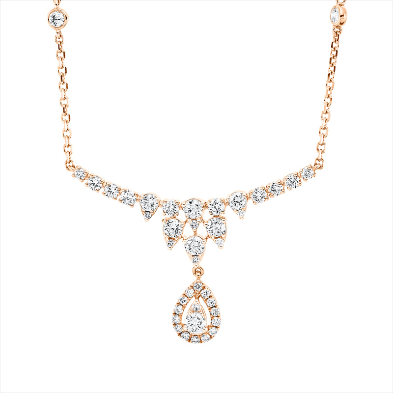 Collier 18 kt RG Tropfen. Fassung rhodi. ZÖ 40 cm & 43cm. 20 Brillanten 0.75 ct. TW-si. 1 Brill. 0.10 ct. TW-si. 21 Brillanten 0.29 ct. TW-si. L:45.7 cm