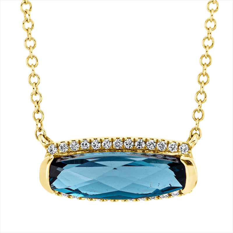 Collier 18 kt GG. mit ZÖ 40 cm + 43 cm. 26 Brillanten 0.08 ct. TW-si. 1 Topas 1.61 ct Lond. blue. L:45.7 cm