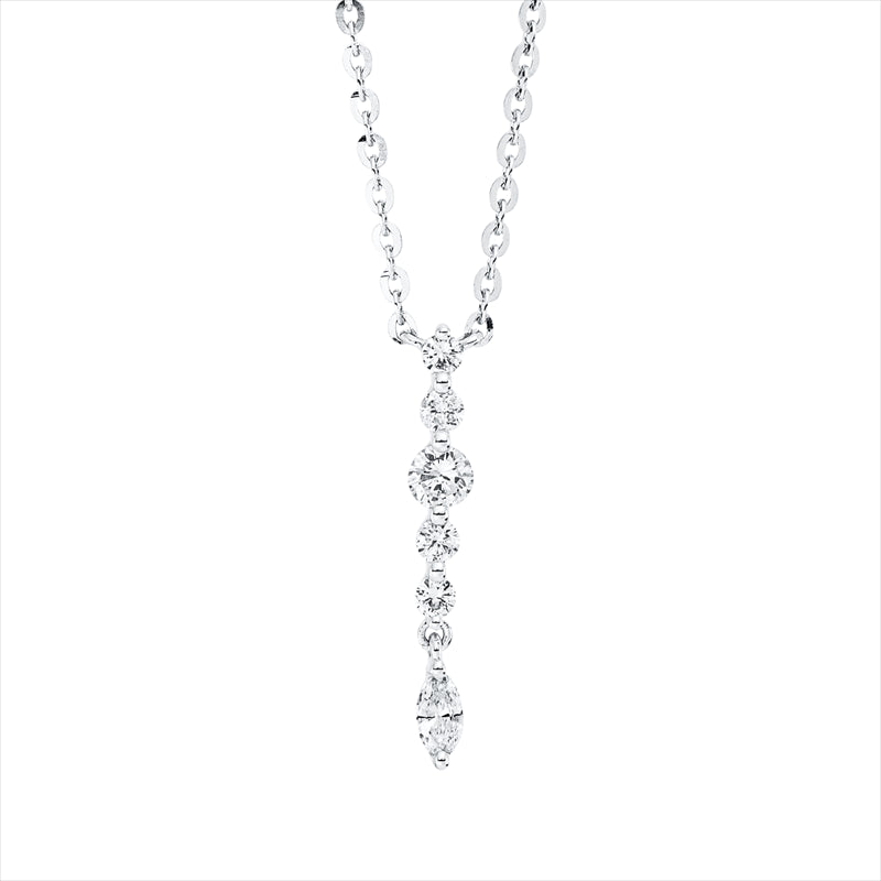Collier 18 kt WG, 1 Brill. 0,10 ct, I-pi, 2 Brill. 0,07 ct, I-pi, 1 Nav. 0,06 ct, W-si, 2 Brill. 0,05 ct, I-pi