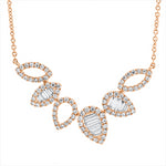 Collier 18 kt RG, mit ZÖ 40 cm + 43 cm, 13 Bag. 0,24 ct, F-vsi, 88 Brill. 0,46 ct, TW-si