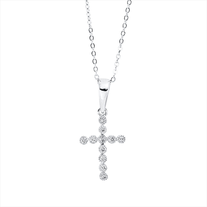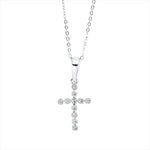 Collier 18 kt WG Kreuz. mit ZÖ 40 cm + 43 cm. 11 Brillanten 0.04 ct. I-pi. H:17.5 mm. B:7.8 mm. L:45.7 cm. S:1.1 mm