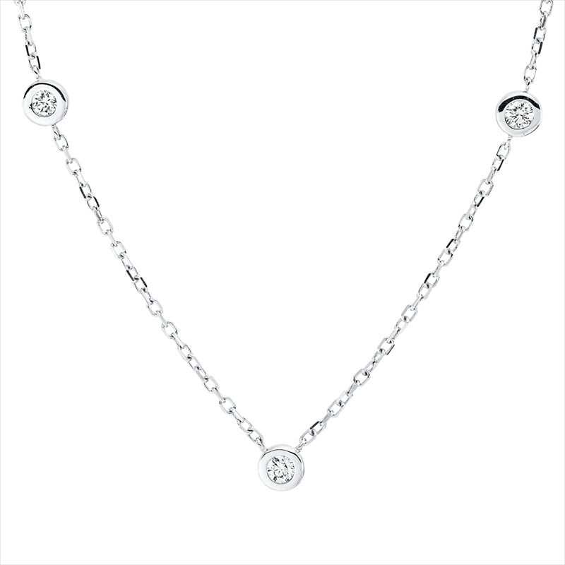 Collier 18 kt WG, mit ZÖ 40 cm + 43 cm, 5 Brill. 0,30 ct, TW-si