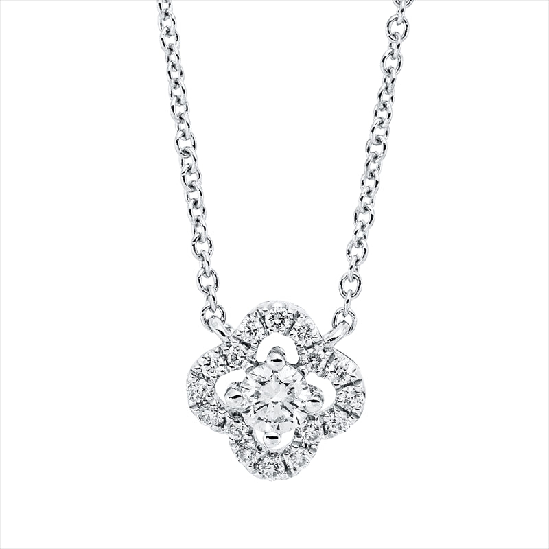 Collier 18 kt WG. mit ZÖ 40 cm. 1 Brill. 0.11 ct. TW-si. 16 Brillanten 0.08 ct. TW-si. L:45.0 cm