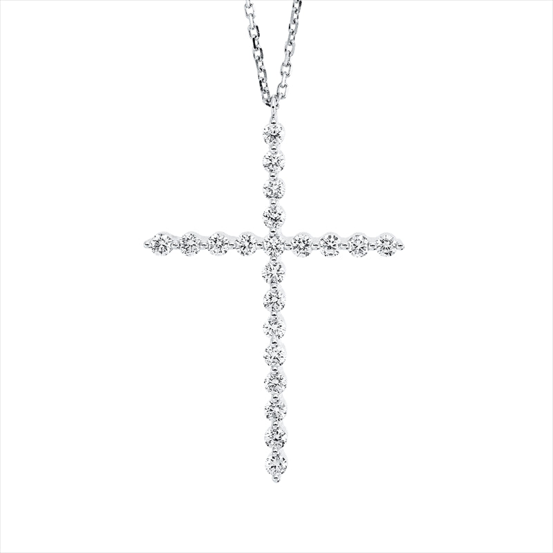 Collier 18 kt WG Kreuz. mit ZÖ 40 cm + 43 cm. 21 Brillanten 0.83 ct. TW-si. H:37.2 mm. B:24.9 mm. L:45.7 cm. S:2.7 mm