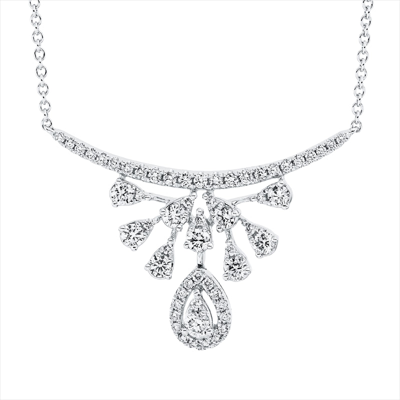 Collier 18 kt WG Tropfen. mit ZÖ 40 cm + 43 cm. 58 Brillanten 0.67 ct. TW-si. L:45.7 cm