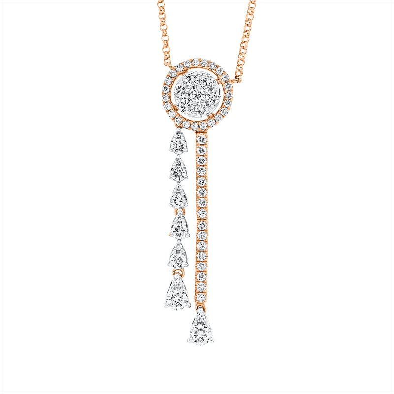 Collier 18 kt RG, mit ZÖ 40 cm + 43 cm, 60 Brill. 0,91 ct, TW-si