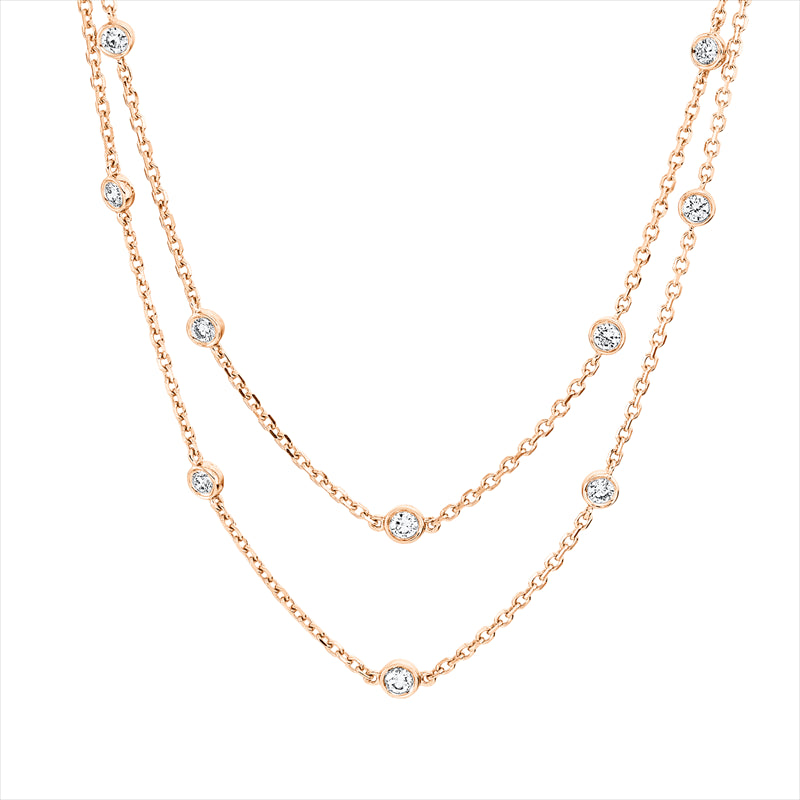 Collier 18 kt RG, mit ZÖ 35,5 cm, 38 cm, 12 Brill. 0,48 ct, 2 Brill. 0,12 ct, 2 Brill. 0,07 ct, TW-si
