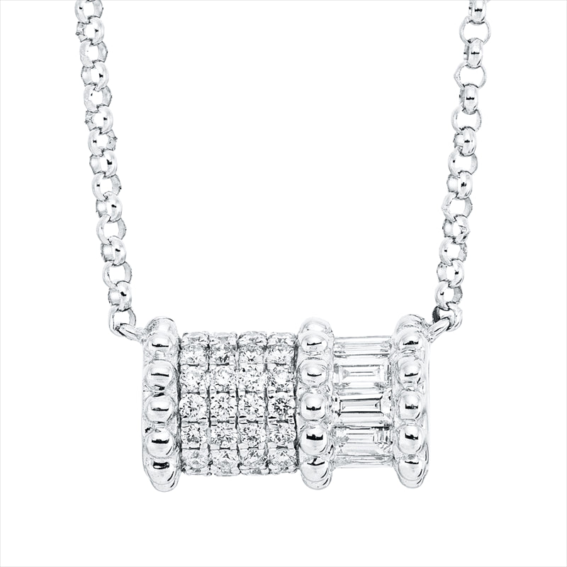 Collier 18 kt WG, mit ZÖ 40 cm, 43 cm, 8 Bag. 0,17 ct, F-vsi/si, 36 Brill. 0,13 ct, TW-si