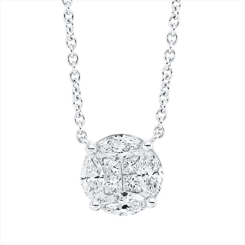 Collier 18 kt WG. mit ZÖ 40 cm. 43 cm. 4 Navette 0.40 ct. F-vsi/si. 4 Brillanten 0.11 ct. F-vsi/si. L:46.0 cm