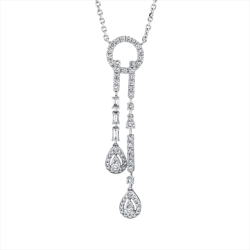 Collier 18 kt WG. 3 Baguette 0.11 ct. F-vsi/si. 84 Brillanten 0.75 ct. TW-si. L:71.1 cm