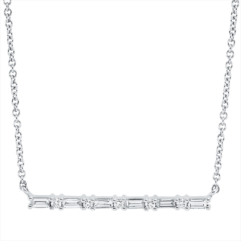 Collier 18 kt WG. mit ZÖ 41 cm.43.5 cm. 6 Baguette 0.23 ct. TW-si. 5 Brillanten 0.06 ct. TW-pi. L:46.0 cm