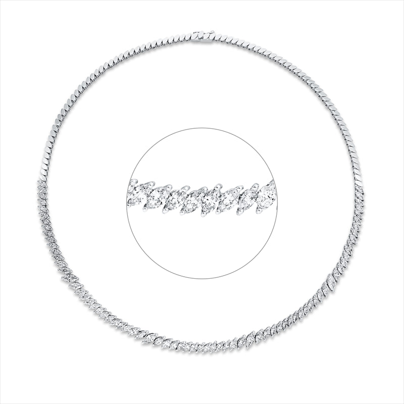Collier 18 kt WG. 4 Navette 1.03 ct. TW-vsi/si. 69 Navette 7.77 ct. TW-vsi/si. L:42.5 cm