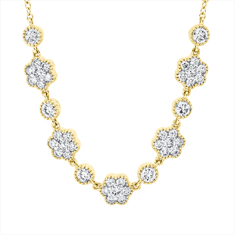 Collier 18 kt GG mit ZÖ 42 cm. Fasssung rhodiniert. 5 Brillanten 0.15 ct. TW-si. 6 Brillanten 0.36 ct. TW-si. 30 Brillanten 0.41 ct. TW-si. L:45.0 cm