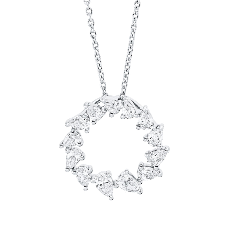 Collier 18 kt WG Kreis. 13 Tropfen 0.85 ct. TW-si. L:45.0 cm