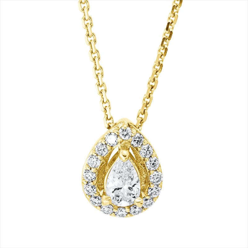 Collier 18 kt GG Tropfen. mit ZÖ 42 cm. 1 Tropfen 0.18 ct. TW-si. 16 Brillanten 0.12 ct. TW-si. H:9.1 mm. B:7.2 mm. L:45.0 cm. S:6.3 mm