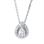 Collier 18 kt WG Tropfen. mit ZÖ 42 cm. 1 Tropfen 0.19 ct. TW-si. 16 Brillanten 0.12 ct. TW-si. H:9.1 mm. B:7.2 mm. L:45.0 cm. S:6.3 mm