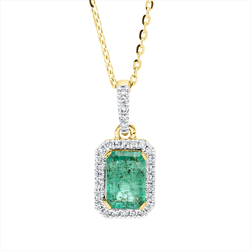 Collier 18 kt GG, Fassung rhodiniert, 29 Brill. 0,08 ct, TW-si, 1 Smaragd 0,59 ct grün