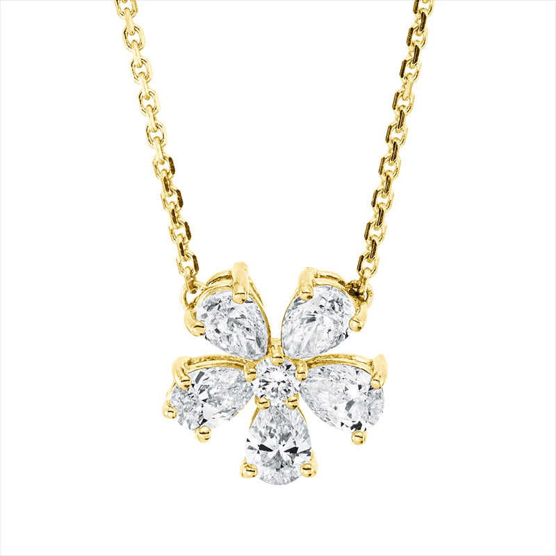 Collier 18 kt GG. mit ZÖ 42 cm. 5 Tropfen 0.76 ct. TW-si. 1 Brill. 0.05 ct. TW-si. L:45.0 cm