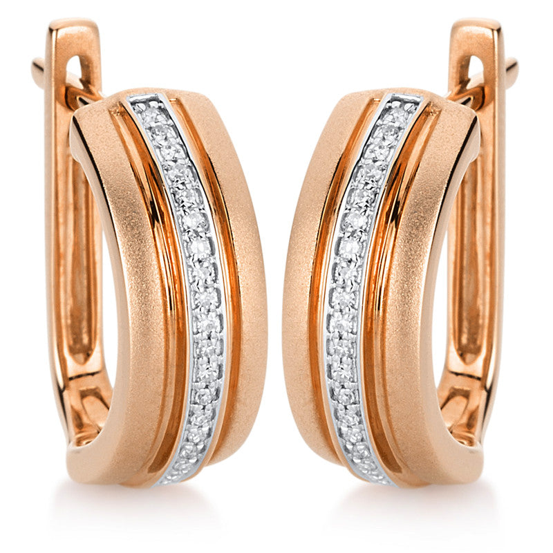 Creolen 14 kt RG. mattiert + poliert. 42 Diamanten 0.10 ct. W-si. H:16.0 mm. B:14.3 mm. S:5.7 mm