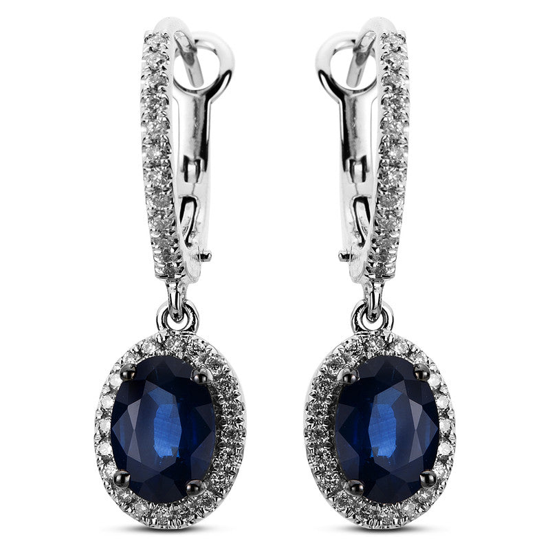 Ohrschmuck 18 kt WG, Fassung schwarz rhodiniert, 64 Brill. 0,32 ct, TW-si, 2 Saphire 1,98 ct blau