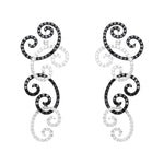 Ohrschmuck 18 kt WG. Fassung schwarz rhodiniert. 136 Brillanten 4.18 ct. TW-si. 162 Brillanten 5.72 ct. schwarz. H:67.3 mm. B:27.8 mm