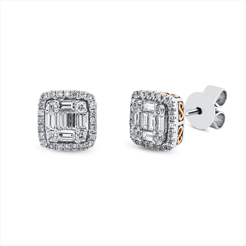Ohrstecker 14 kt WG+RG. 12 Baguette 0.54 ct. TW-si. 56 Brillanten 0.30 ct. TW-si