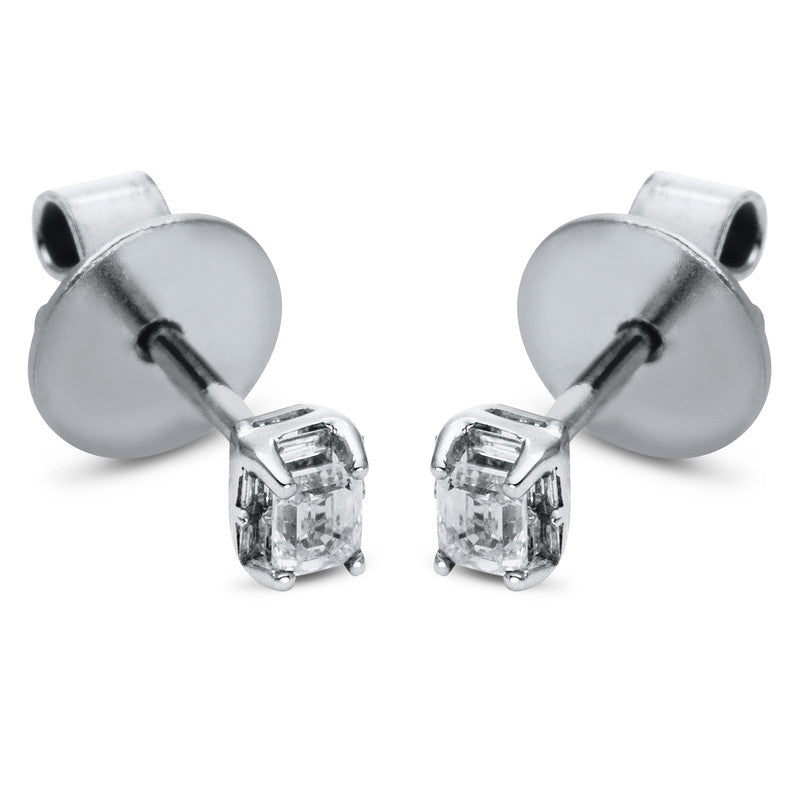 Ohrstecker 4er-Krappe 18 kt WG. 12 Baguette 0.06 ct. TW-si. 2 Sm.schliff 0.21 ct. TW-si. H:3.9 mm. B:3.1 mm