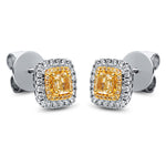 Ohrstecker 4er-Krappe 18 kt WG+GG. 40 Brillanten 0.30 ct. TW-si. 2 Cushion 0.69 ct. gelb. 40 Brillanten 0.11 ct. gelb. H:9.6 mm. B:9.6 mm