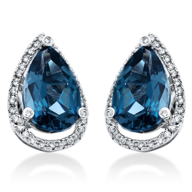 Ohrstecker 18 kt WG, 66 Brill. 0,24 ct, TW-pi, 2 Topase 5,34 ct Lond. blue