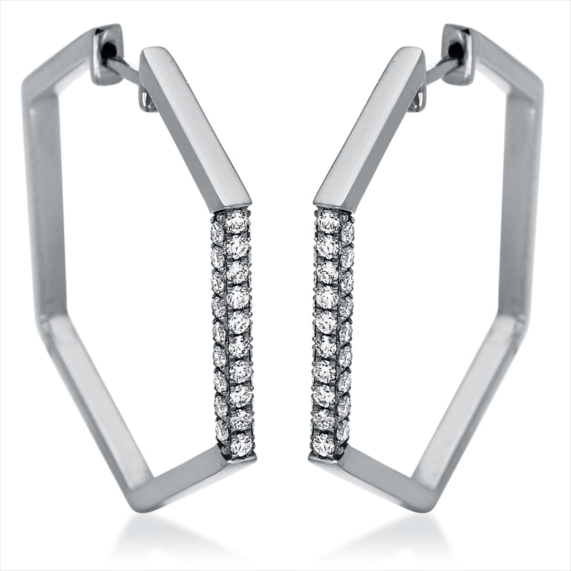 Creolen 14 kt WG. 56 Brillanten 0.64 ct. TW-si. H:30.3 mm. B:28.0 mm. S:2.3 mm