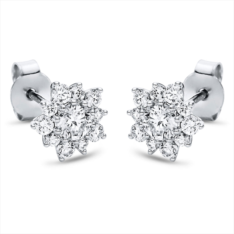 Ohrstecker 18 kt WG. 2 Brillanten 0.50 ct. TW-si. 20 Brillanten 0.53 ct. TW-si. Ø:9.0 mm