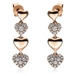 Ohrschmuck 18 kt RG Herzen. 10 Brillanten 0.14 ct. TW-si. 42 Brillanten 0.15 ct. TW-si. 2 Brillanten 0.05 ct. TW-si. H:21.0 mm. B:5.7 mm. S:2.3 mm