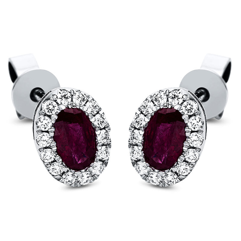 Ohrstecker 18 kt WG Oval. 28 Brillanten 0.17 ct. TW-si. 2 Rubine 0.54 ct rot