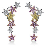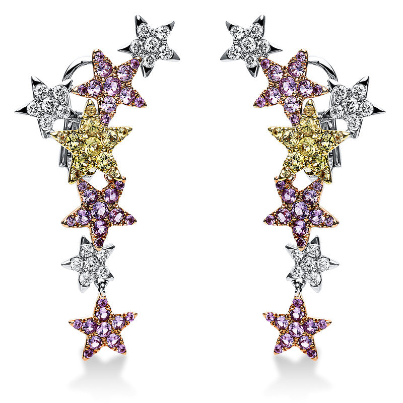 Ohrschmuck 18 kt WG+GG+RG Stern. 36 Brillanten 1.02 ct. TW-vsi. 22 Saphire 0.98 ct gelb. 66 Saphire 2.17 ct pink