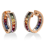 Creolen 18 kt RG. 124 Brillanten 0.94 ct. TW-si. 32 Saphire 4.39 ct multicolor. H:19.5 mm. B:19.6 mm. S:5.9 mm