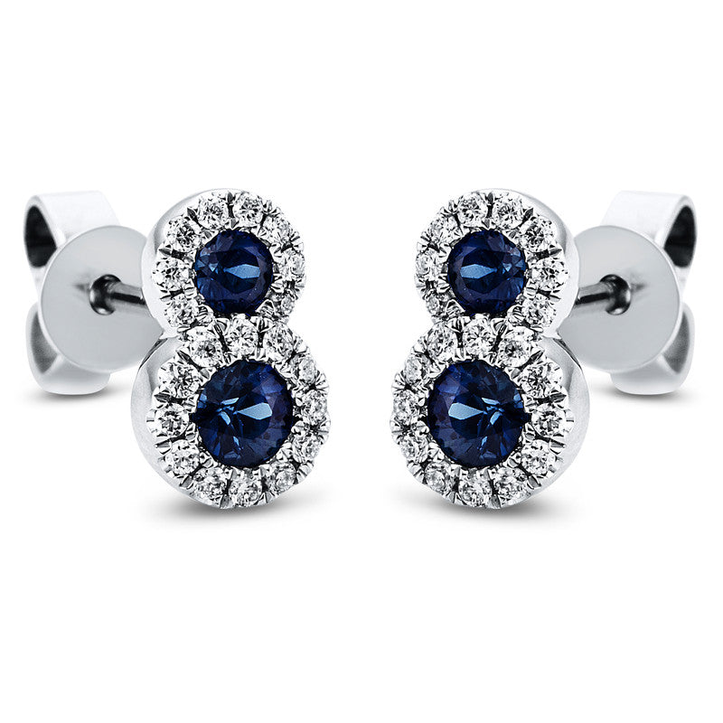 Ohrstecker 18 kt WG, 40 Brill. 0,13 ct, TW-si, 4 Saphire 0,35 ct blau