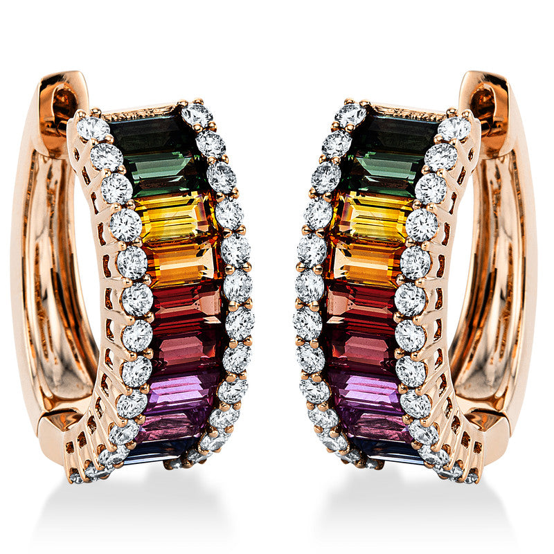 Creolen 18 kt RG. 52 Brillanten 0.56 ct. TW-si. 20 Saphire 2.73 ct multicolor. H:17.3 mm. B:6.8 mm