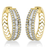 Creolen 18 kt GG. 54 Baguette 1.39 ct. TW-si. 68 Brillanten 1.77 ct. TW-si. H:27.3 mm. B:26.8 mm. S:7.3 mm