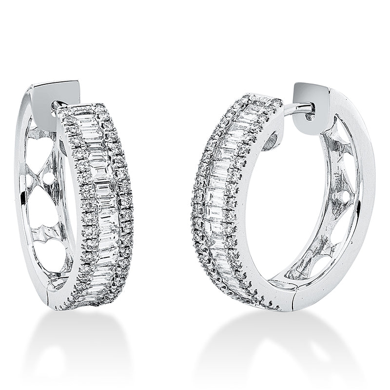 Creolen 18 kt WG. 34 Baguette 0.65 ct. TW-si. 84 Brillanten 0.29 ct. TW-si. B:18.1 mm. S:4.2 mm