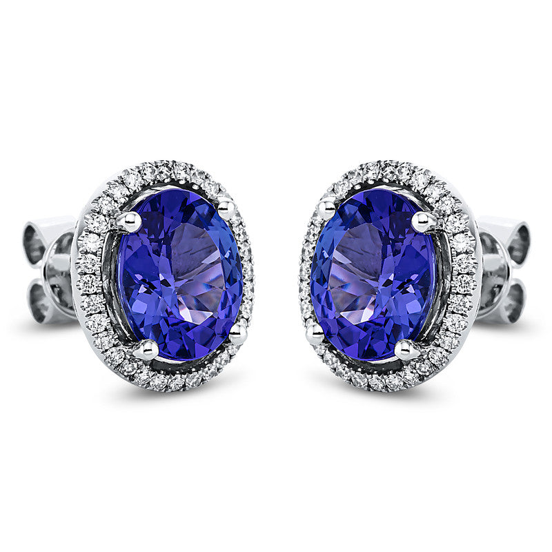 Ohrstecker 18 kt WG, 48 Brill. 0,23 ct, TW-si, 2 Tansanit 2,70 ct blau