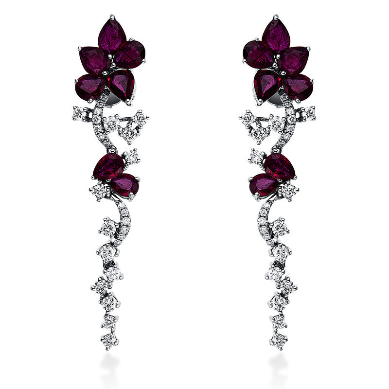 Ohrschmuck 18 kt WG. 26 Brillanten 0.82 ct. W-si. 26 Brillanten 0.16 ct. W-si. 14 Rubine 3.74 ct rot