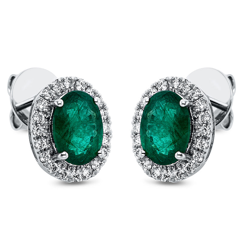 Ohrstecker 18 kt WG, 40 Brill. 0,32 ct, TW-si, 2 Smaragde 3,00 ct grün