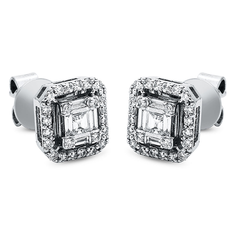 Ohrstecker 18 kt WG. 10 Baguette 0.17 ct. TW-si. 48 Brillanten 0.19 ct. TW-si. H:7.7 mm. B:7.3 mm. S:3.7 mm