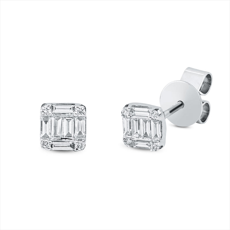 Ohrstecker 18 kt WG. 12 Baguette 0.23 ct. TW-vsi. 8 Brillanten 0.04 ct. TW-vsi