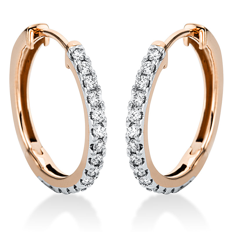 Creolen 18 kt RG. Fassung rhodiniert. 30 Brillanten 0.50 ct. TW-si. H:18.4 mm. B:18.6 mm. S:1.9 mm