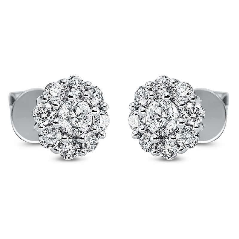 Ohrstecker 18 kt WG. 16 Brillanten 0.60 ct. TW-si. 2 Brillanten 0.40 ct. TW-si. Ø:8.2 mm