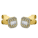 Ohrstecker 18 kt GG. 6 Baguette 0.11 ct. TW-si. 48 Brillanten 0.14 ct. TW-si. H:6.0 mm. B:5.6 mm. S:2.8 mm