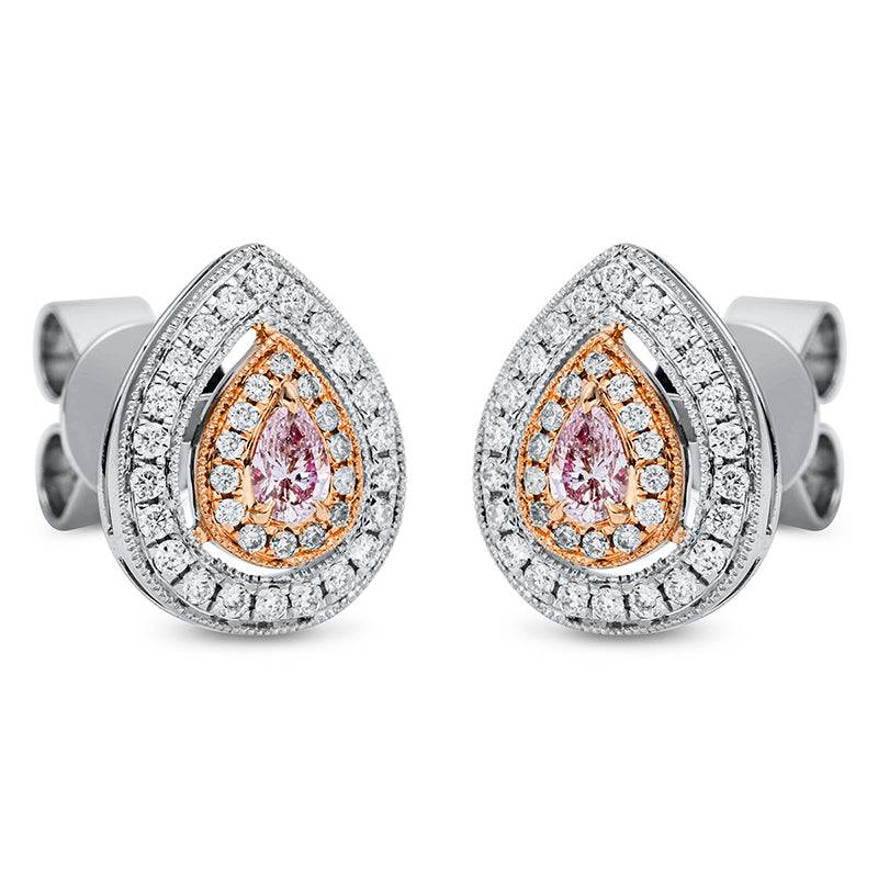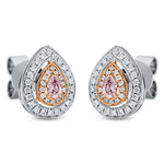 Ohrstecker 18 kt WG+RG, 44 Brill. 0,17 ct, TW-si, 2 Tropfen 0,16 ct, pink, 28 Brill. 0,07 ct, pink