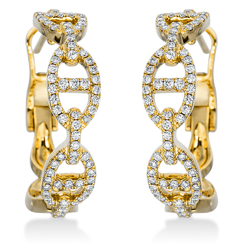 Creolen 18 kt GG. 156 Brillanten 0.73 ct. W-si. H:25.4 mm. B:23.6 mm. S:6.0 mm