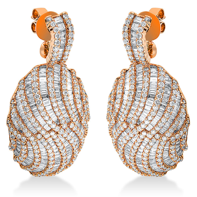 Ohrschmuck 18 kt RG, 376 Trap. 7,59 ct, TW-vsi, 407 Brill. 5,12 ct, TW-vsi
